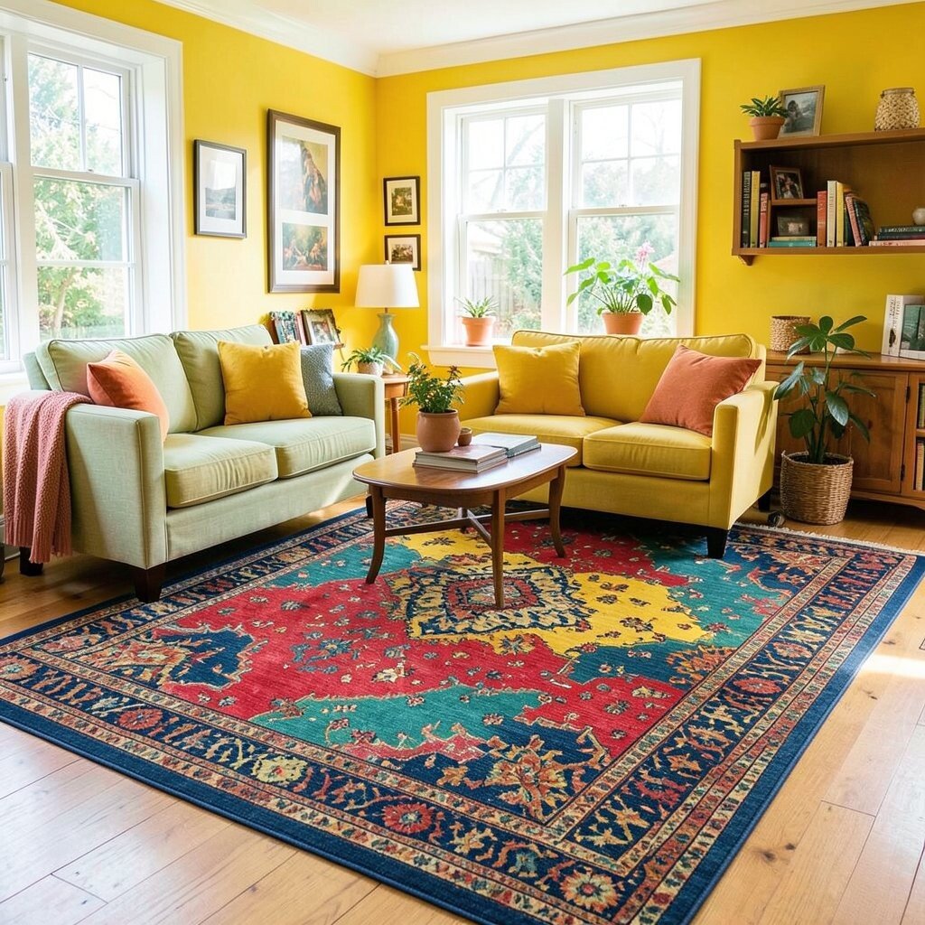 Area rugs are like magic carpets that can change your room’s look. They come in all sizes and can have bold patterns or simple designs. A colorful rug can make a room feel warm and inviting.