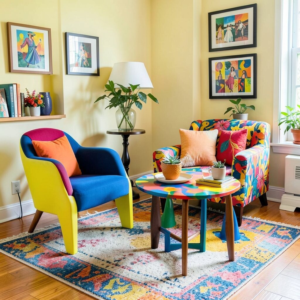 Furniture doesn’t have to be boring! Look for pieces with interesting shapes or bold colors. A bright chair or a colorful table can be the star of your room.