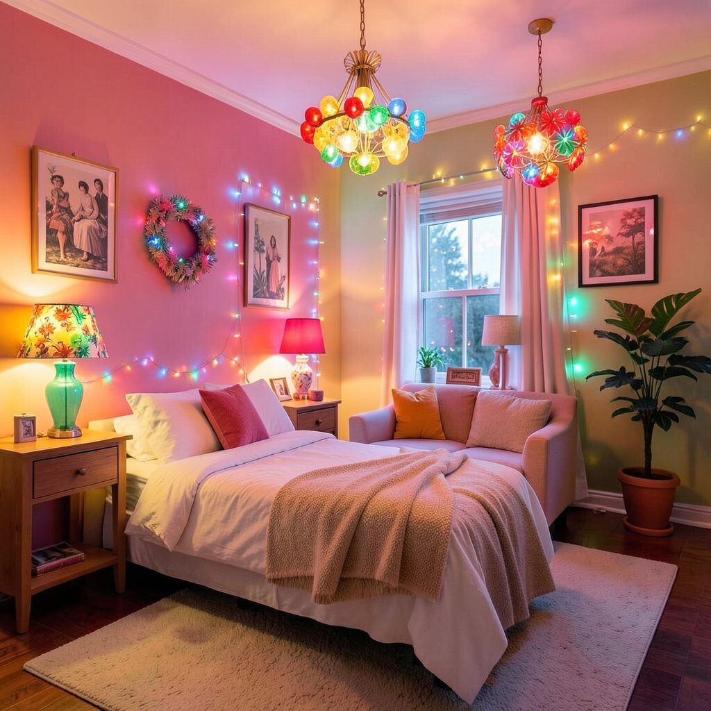 Lighting can change everything! Choose lamps or light fixtures in fun colors or shapes. They can be like jewelry for your room, adding sparkle and style.
