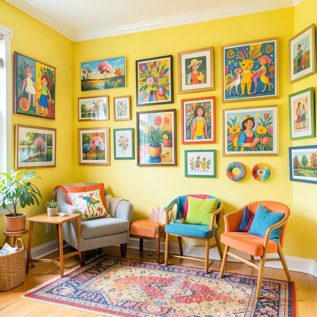 Art can add so much character to a room. Look for colorful paintings or prints that make you happy. You can create a gallery wall with different pieces for an eclectic look.