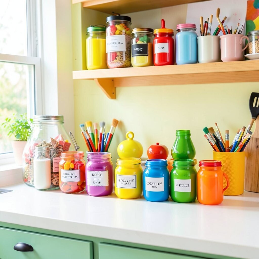 Jars can be more than just storage! Choose ones in bright colors or interesting shapes. They’re perfect for holding everything from kitchen staples to craft supplies.