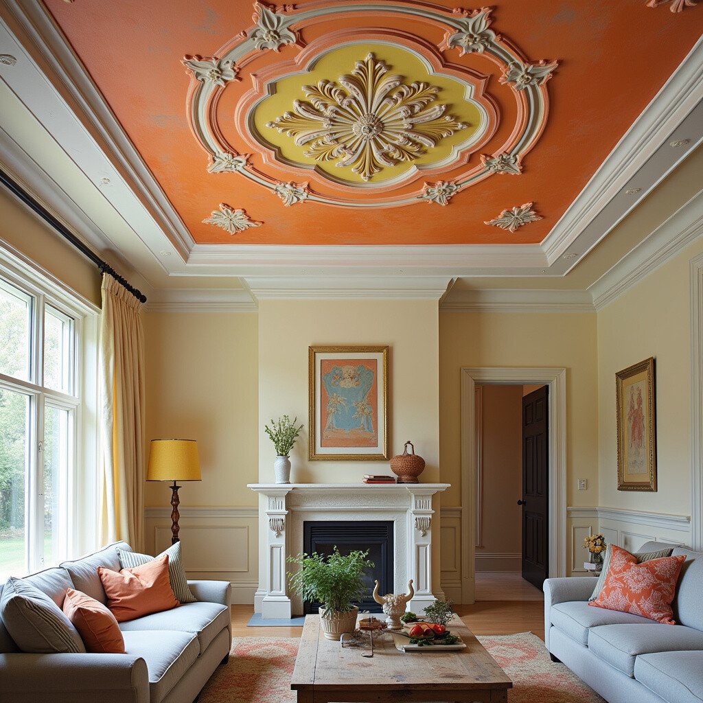 Look up! Ceilings, often termed the “fifth wall,” are perfect for a splash of unexpected color. Consider a soft sky blue or a warm peach to create a cozy atmosphere.