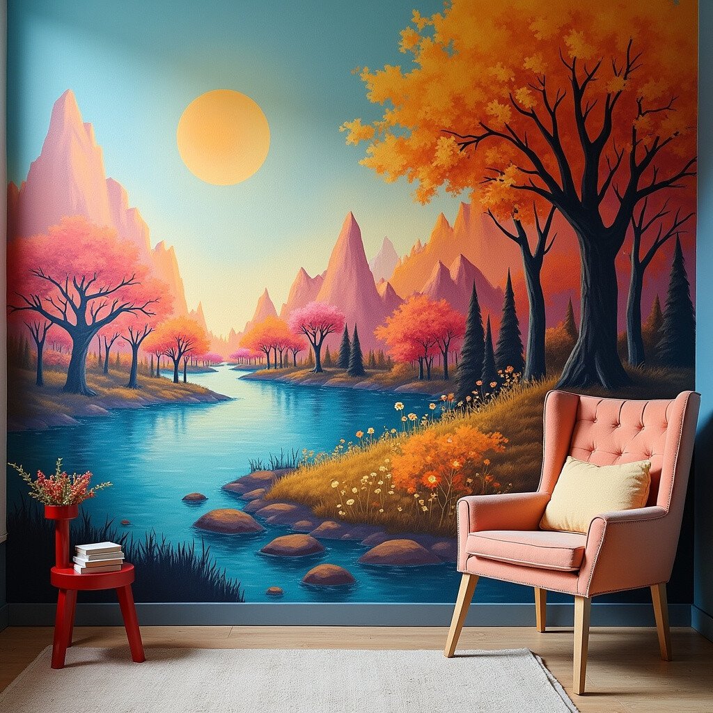 Murals turn your wall into a canvas for storytelling. Whether it’s a forest scene, cityscape, or abstract art, murals make a bold statement.