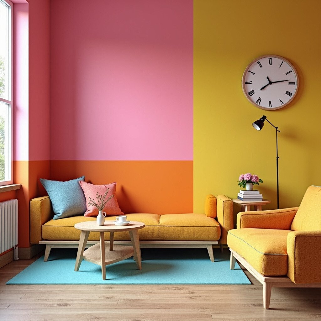 Color blocking is all about bold, contrasting colors in large sections. Think of a wall divided into two or three distinct blocks of vibrant colors.
