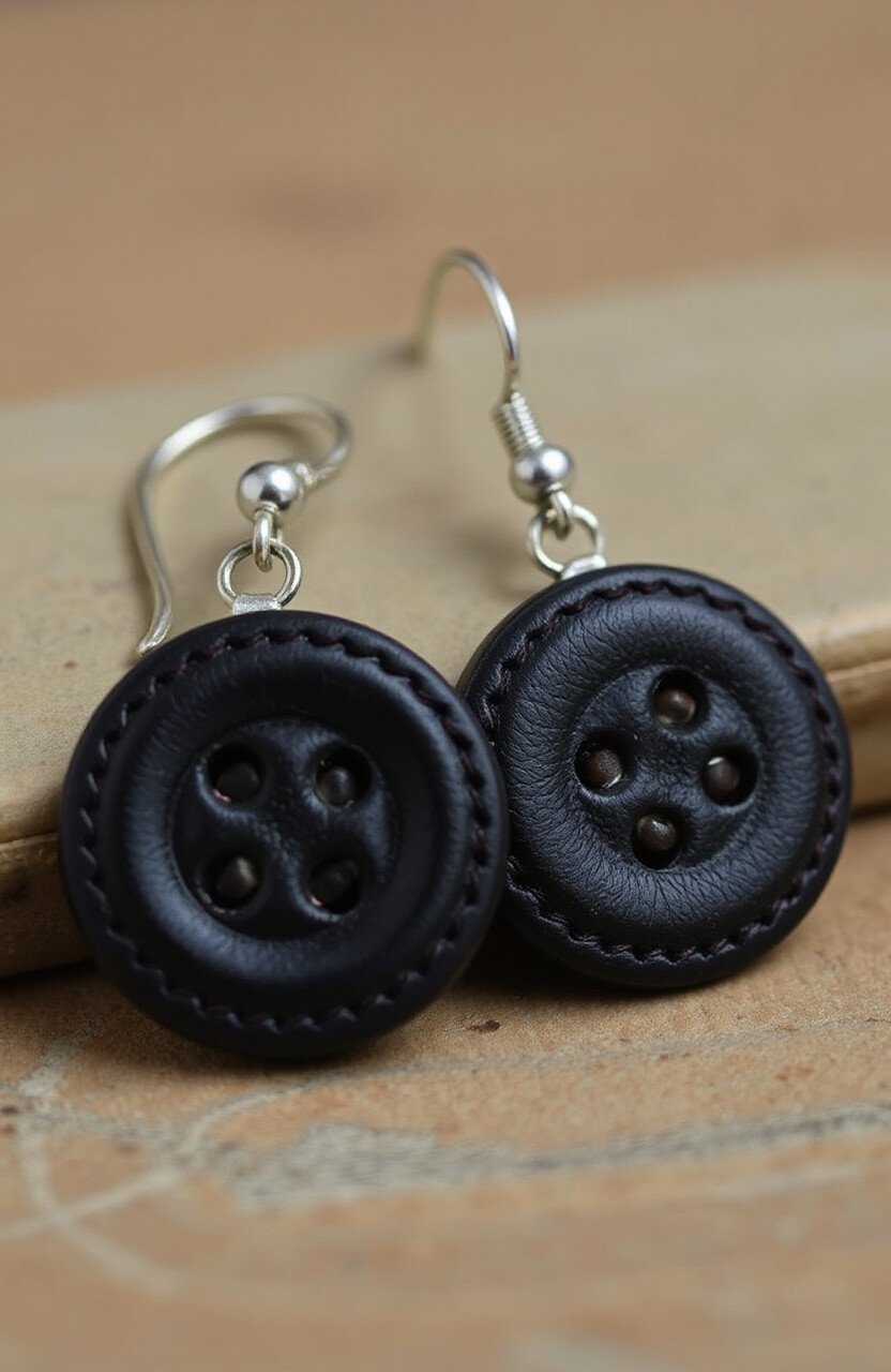 Leather button earrings offer a sleek, modern look. They’re durable and can be made in various colors. Perfect for adding an edge to your style.