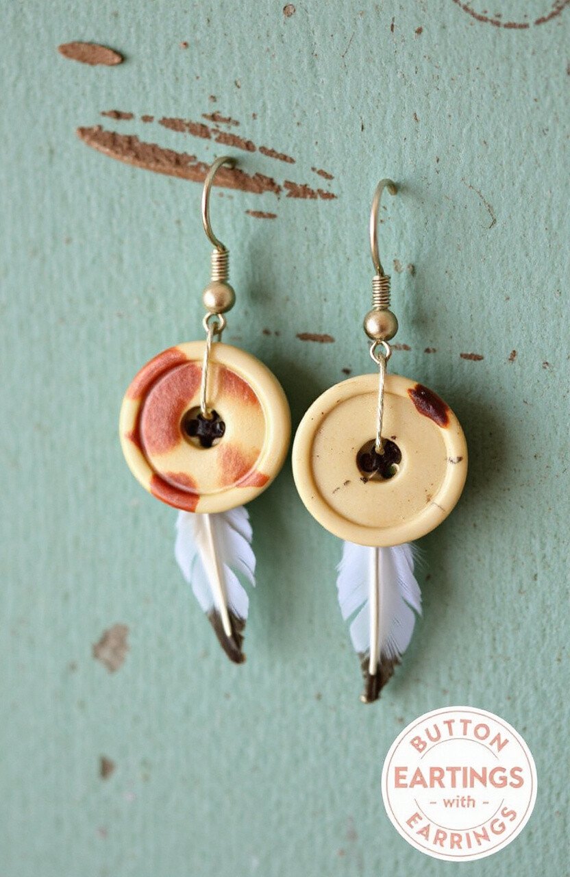 Attach small feathers to your buttons for a whimsical touch. This is a creative project that lets you experiment with textures. These earrings are a lovely way to show your free-spirited side.