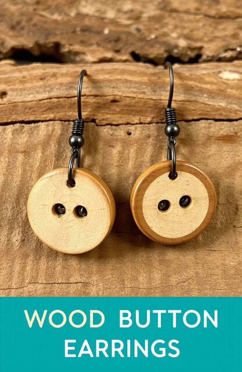 Wooden button earrings bring an earthy vibe that’s both rustic and chic. Each piece of wood has its unique grain, making every pair special. They pair well with casual outfits, adding a touch of nature to your style.