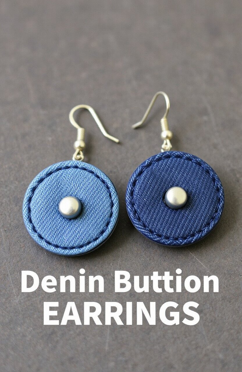 Denim never goes out of style, and denim button earrings are no exception. They add a casual, cool vibe to any outfit. Plus, they’re perfect for recycling old jeans, giving them a new life.