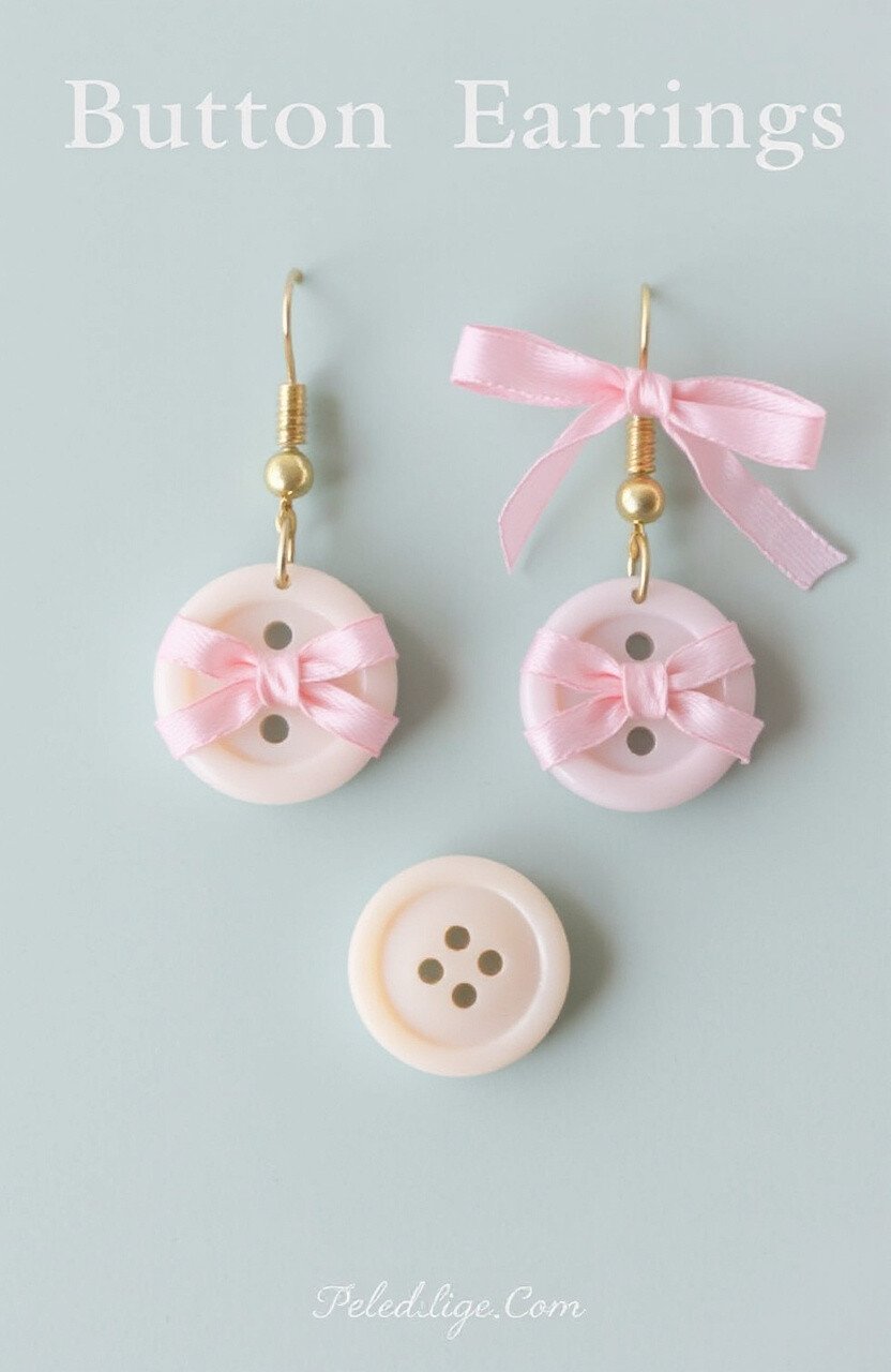 Tie small bows or wrap ribbons around your buttons. This is an easy project that adds a lovely detail to your accessories. These earrings are a charming choice for those who love pretty, delicate designs.