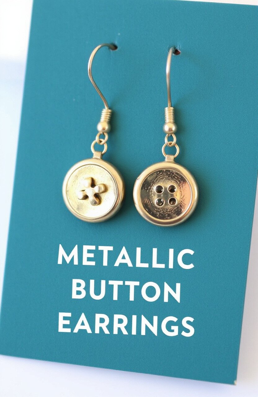 Choose metallic buttons or paint plain buttons with metallic paint. This is an easy way to add a bit of sparkle to your jewelry collection. These earrings are a chic choice for those who love shiny accessories.