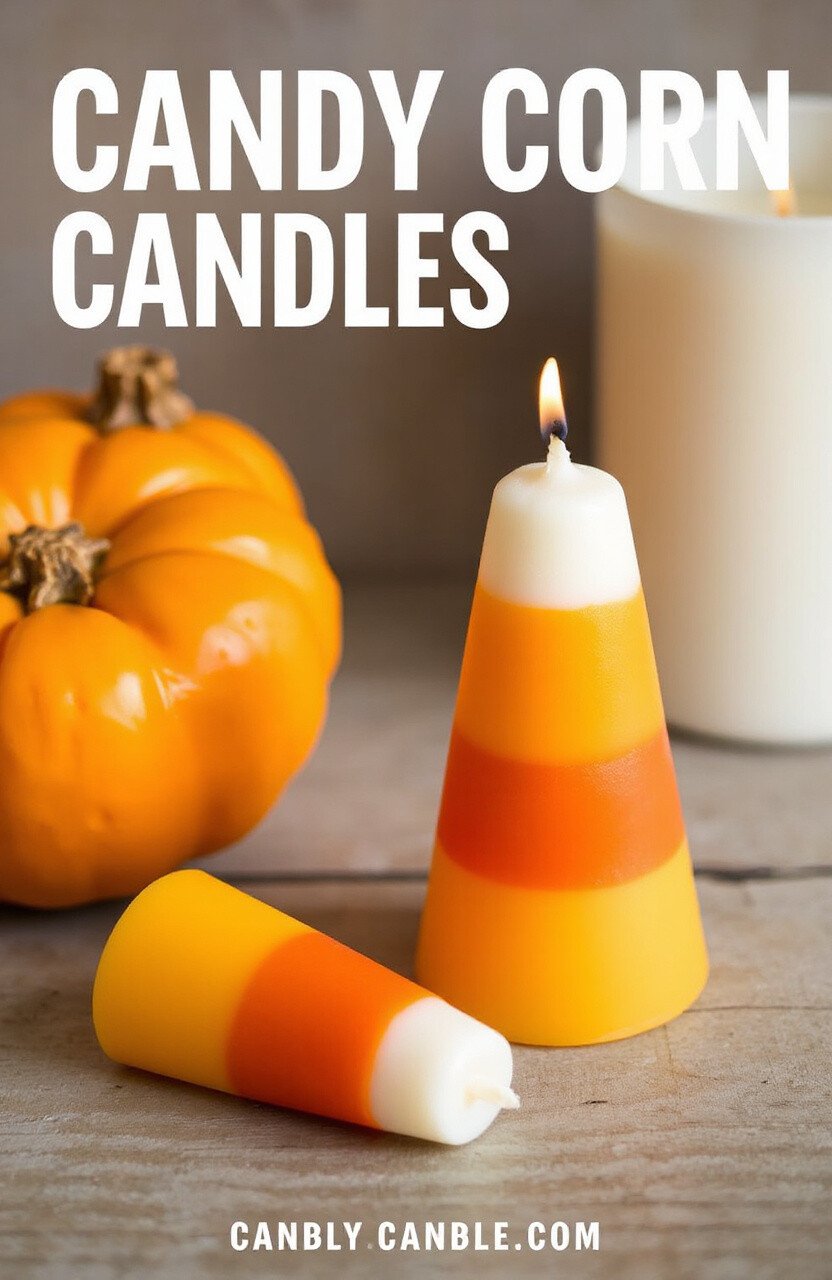 Celebrate autumn with candy corn candles. Layer yellow, orange, and white wax for a festive look.
