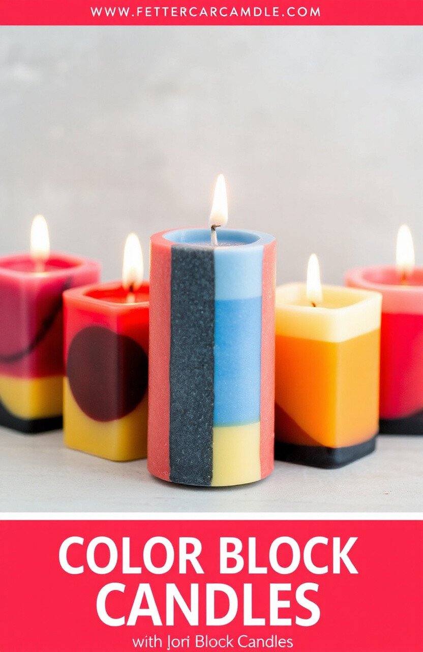 Create bold, modern designs with color block candles. Pour different colors of wax side by side for a striking effect.