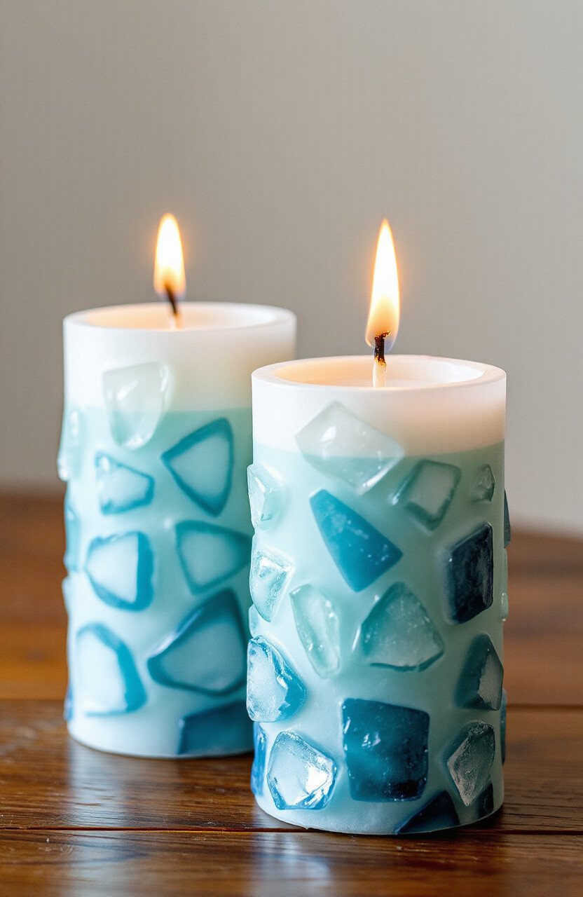 These candles are sure to catch the eye and are perfect for parties or festive decor. Choose colors that match your theme or season. Glitter is inexpensive, and a little goes a long way.