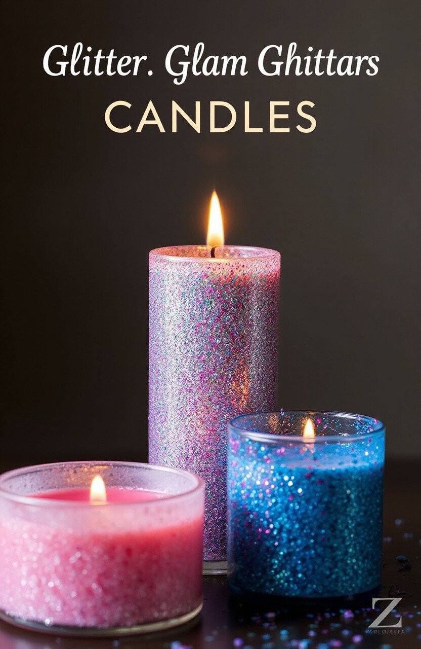 Add some sparkle to your life with glitter candles. Mix glitter into the wax or sprinkle it on top while the wax is still soft.