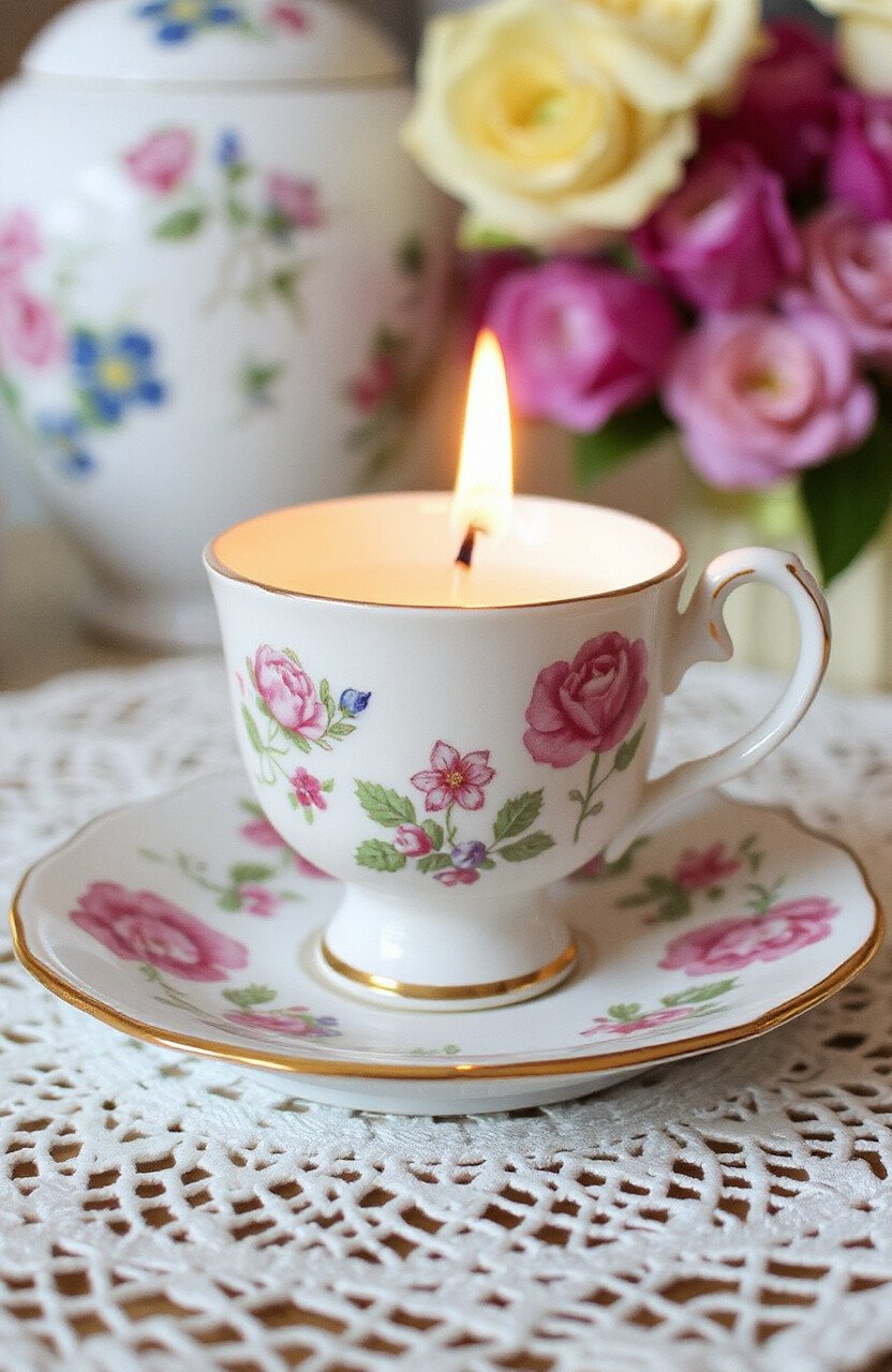 Turn vintage teacups into charming candles. These make for delightful table centerpieces or thoughtful gifts. The combination of the delicate teacup and the soft glow of the candle is simply enchanting.