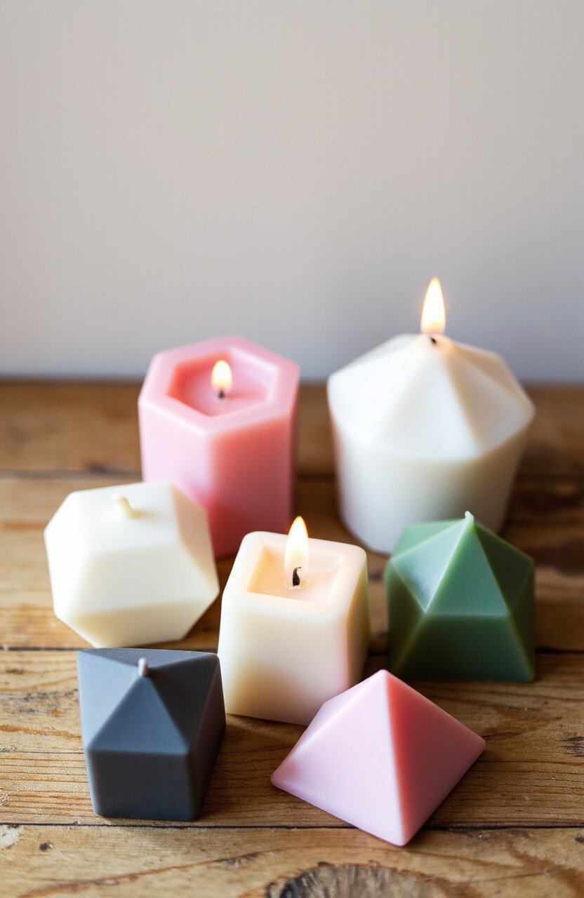 Use silicone molds to create candles in geometric shapes. Think hexagons, cubes, or even pyramids.