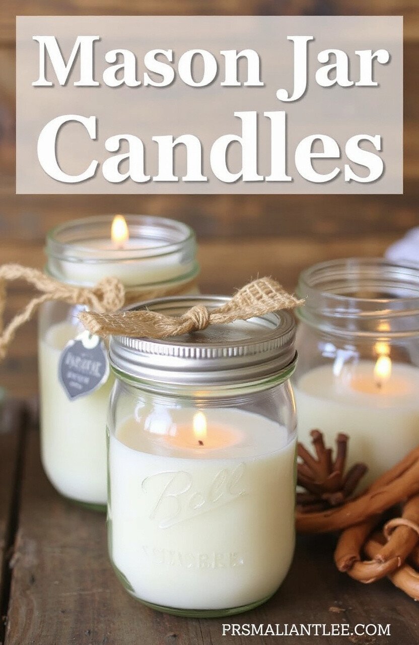 Turn classic mason jars into charming candles. They’re perfect for rustic or farmhouse decor.