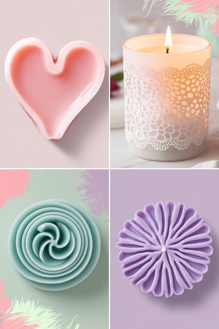 - Create heart-shaped candles in pink and red hues. Add a scent like rose or lavender for a romantic touch.