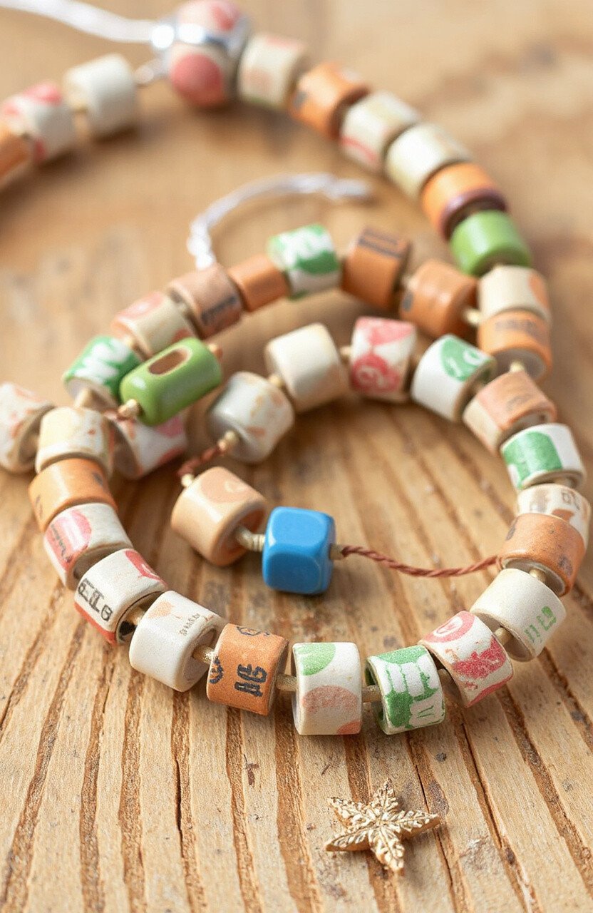 String them into necklaces or bracelets. It’s a sustainable craft that transforms trash into treasure.