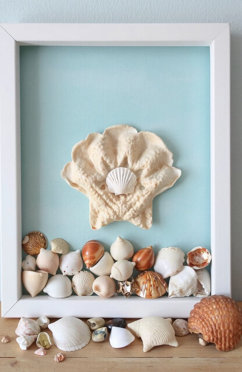 Use shells to create beautiful art pieces. Arrange them on a canvas or frame for a seaside vibe.