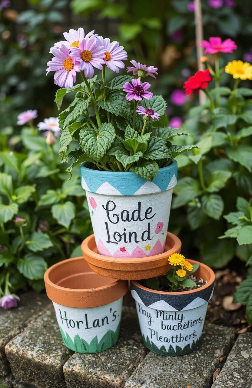 Personalize them with names or quotes for a special touch. They’re a bright and cheerful way to display your plants.