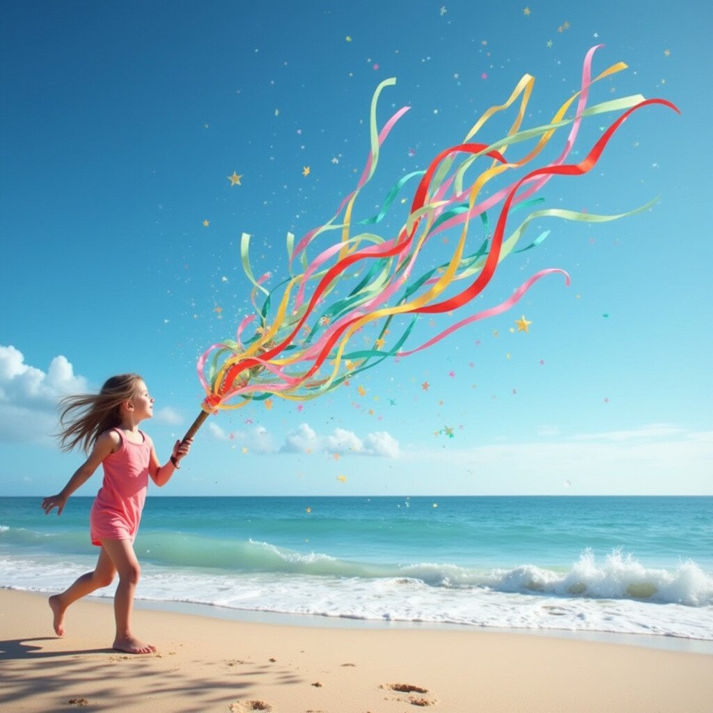 Make colorful streamers using ribbons and attach them to a stick. Run with them along the beach to see them stream like comets.