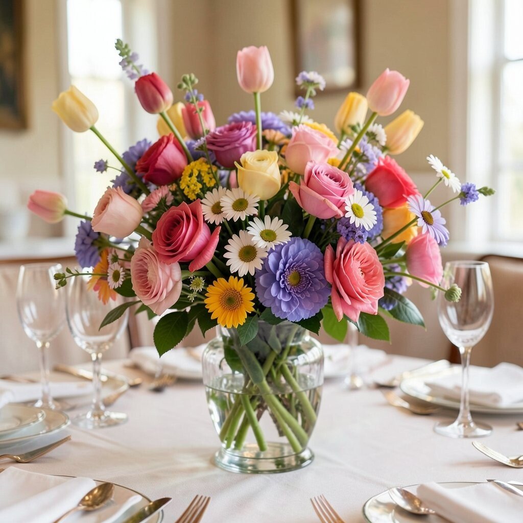 You can’t go wrong with a classic floral arrangement. Choose flowers in colors that complement your table setting. Whether it’s roses, tulips, or daisies, flowers always add beauty and elegance.