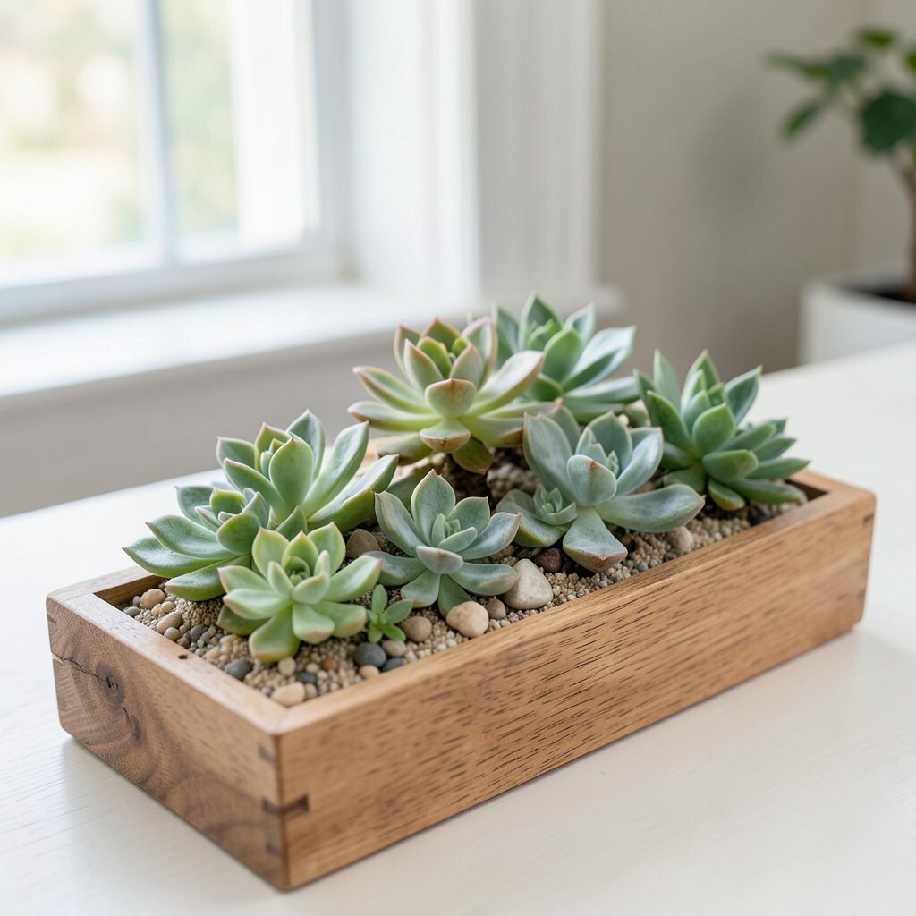 Succulents are not only trendy but also low-maintenance, making them a centerpiece you can enjoy all year round. Arrange them in a shallow wooden box or a long tray for a mini garden effect. They bring a touch of nature indoors and require minimal care.