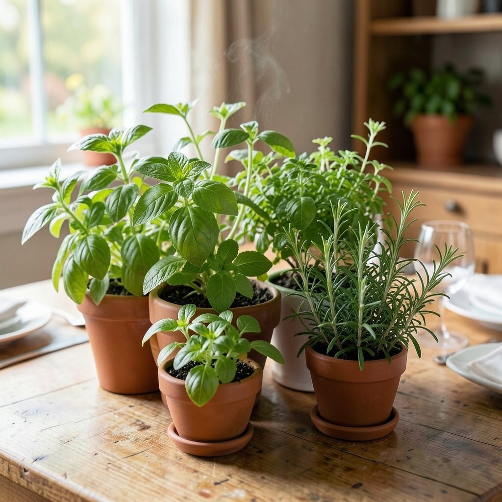 A small herb garden can be both decorative and functional. Arrange pots of your favorite herbs like basil, mint, or rosemary on the table. Not only do they look fresh and green, but they also add a delightful aroma.