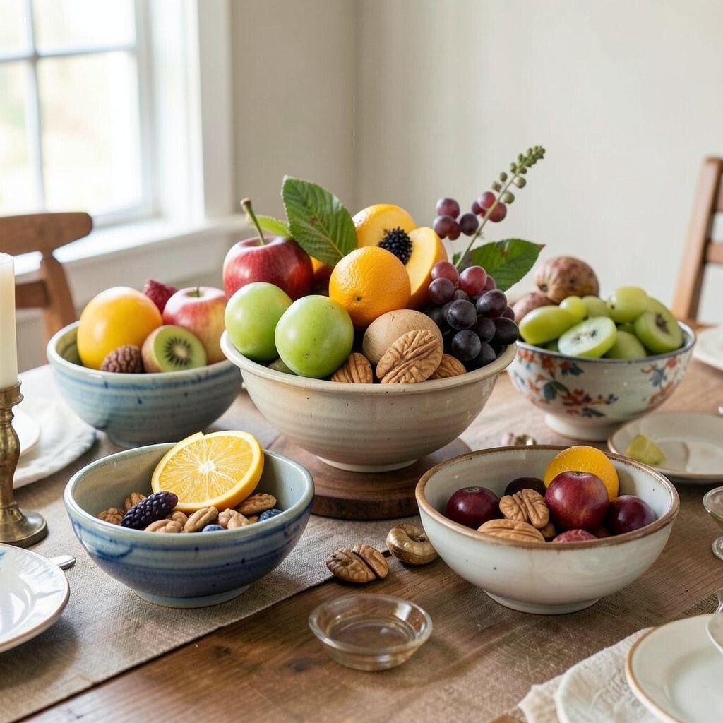 Artisanal ceramic bowls make for a stunning centerpiece. Fill them with fresh fruit, nuts, or decorative objects. The craftsmanship of the bowls adds an artistic touch to your table.