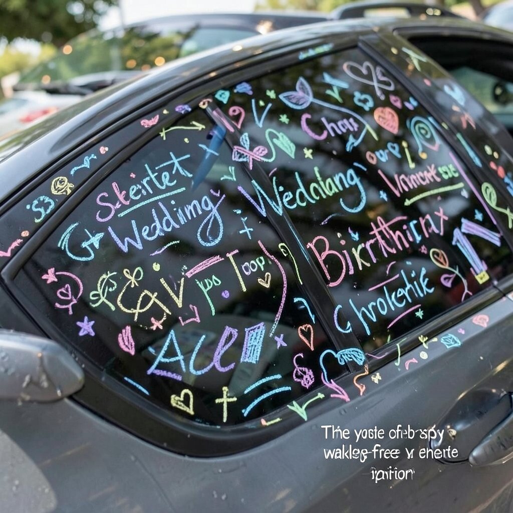 Celebrate special occasions by decorating car windows with chalk markers. Announce a wedding, graduation, or birthday in vibrant style.