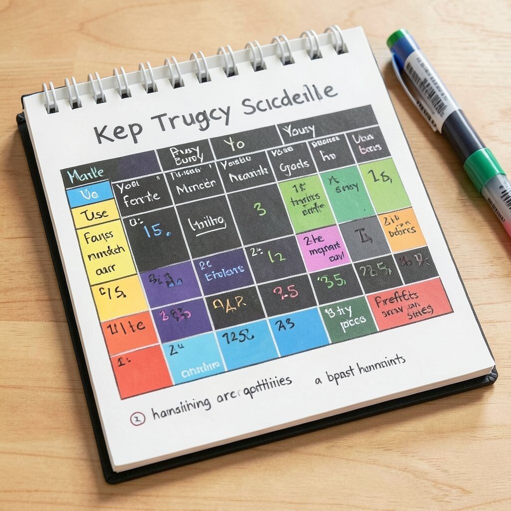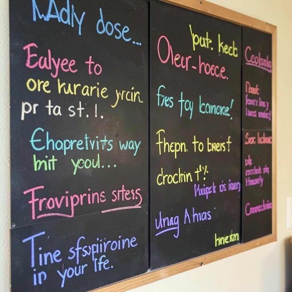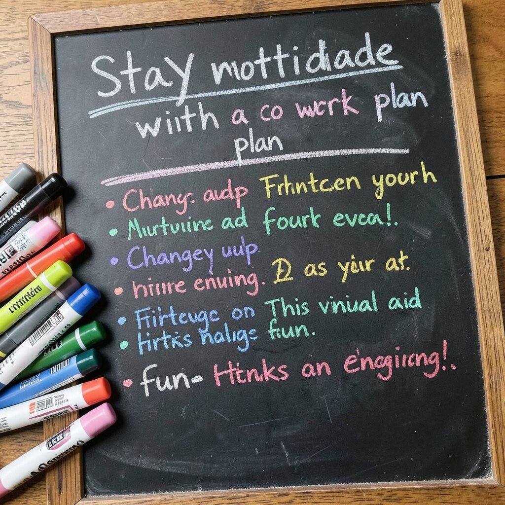 Stay motivated with a colorful workout plan on a chalkboard. Use different shades to keep track of your fitness goals and routines.