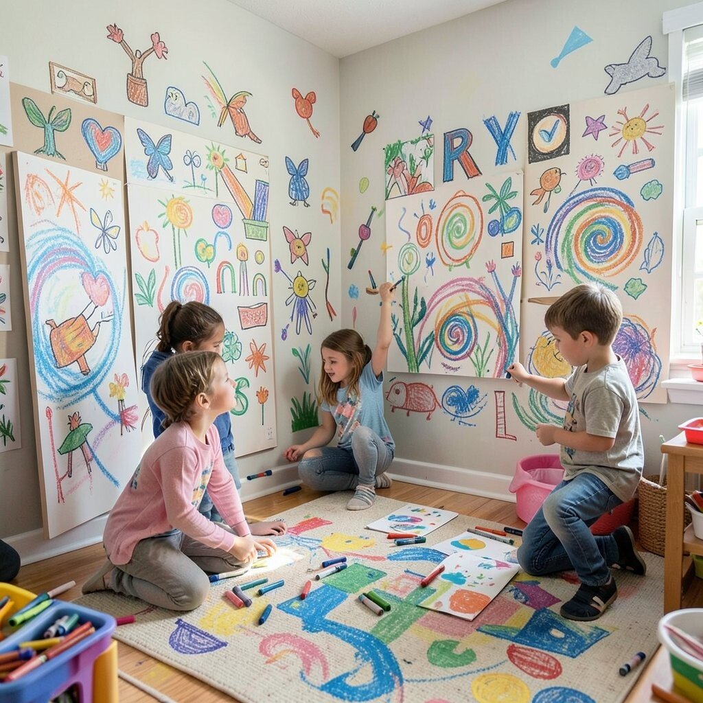 Transform a section of the playroom into an interactive, ever-changing masterpiece. Let children express their creativity on walls or boards with no mess to worry about.