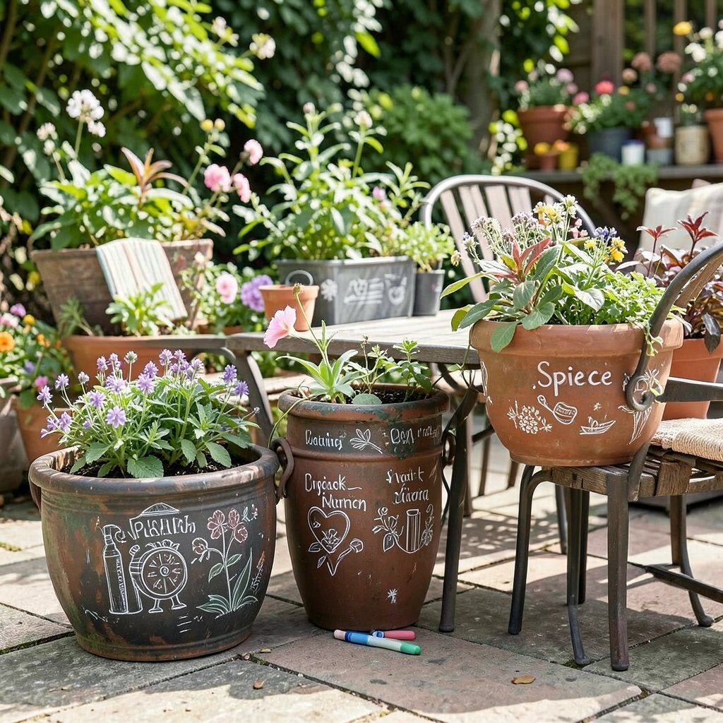 Spice up your outdoor living space with weather-friendly chalk marker designs on planters, tables, or chairs. They can transform dull surfaces into lively focal points.