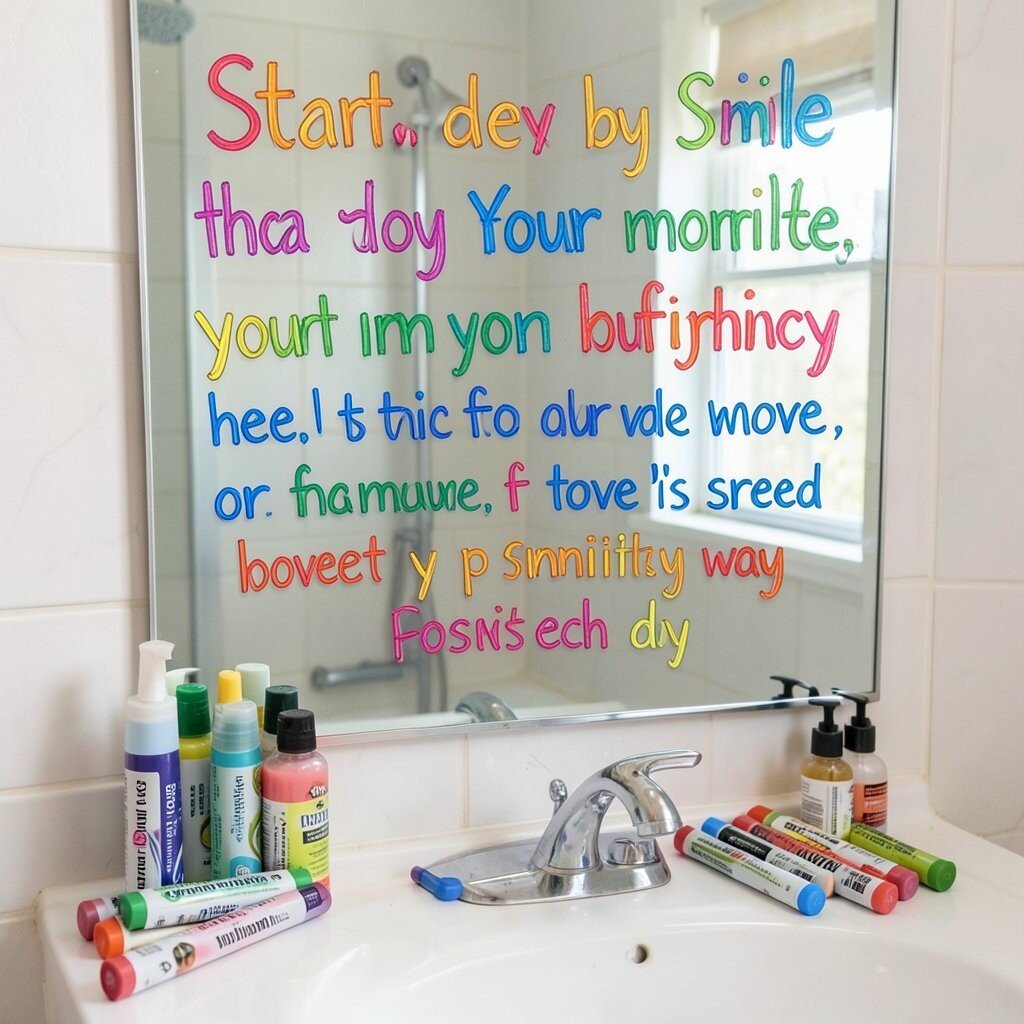 Start the day with a smile by writing uplifting messages on your bathroom mirror. Use bright colors to make your morning routine more cheerful.
