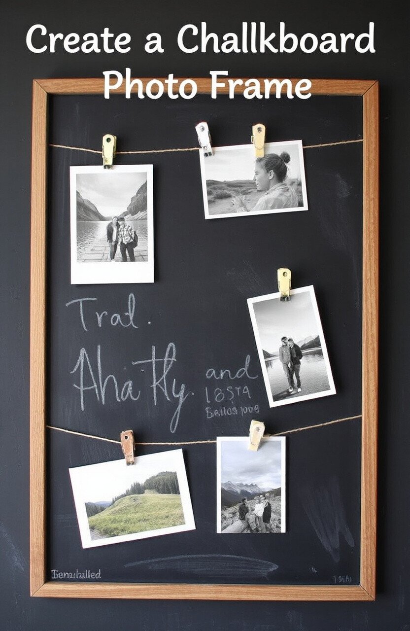 Combine photos with chalk art by creating a chalkboard photo frame. This allows you to display pictures alongside fun doodles or captions. It’s a personalized way to showcase memories.