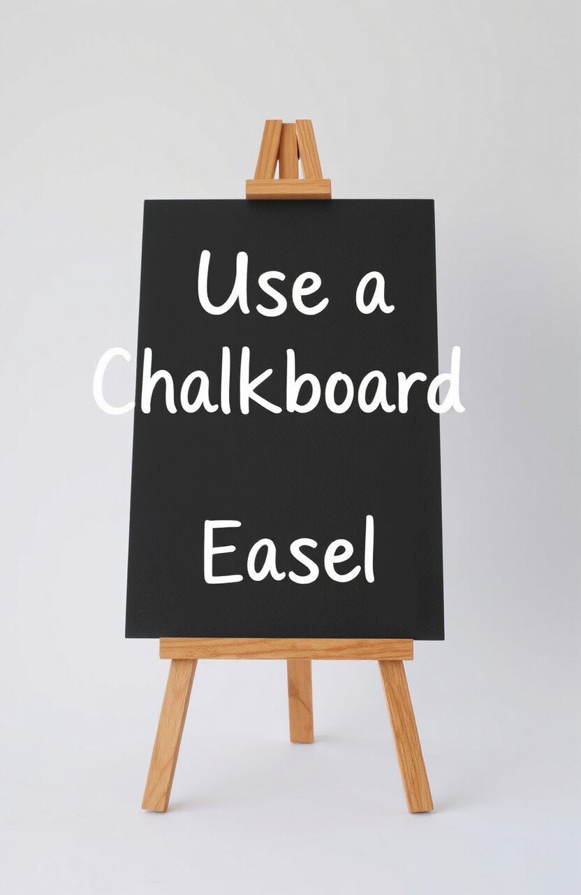 An easel gives your chalkboard a professional look. It’s perfect for displaying signs at events, in stores, or at home. Easy to move and adjust, an easel adds versatility to your display.