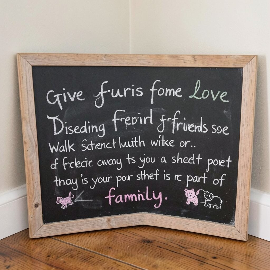 Give your furry friends some love with a chalkboard sign in their corner. Display feeding times, walk schedules, or a cute message just for them. It’s like a little space dedicated to your pet.