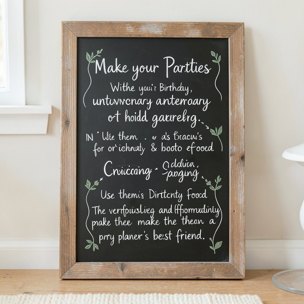 Make your parties unforgettable with chalkboard signs. Whether it’s a birthday, anniversary, or holiday gathering, they add a festive flair.