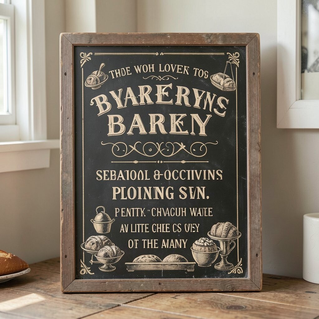Design it with elegant lettering and illustrations of baked goods. It evokes the charm of an old-world bakery, making your space feel inviting and warm.