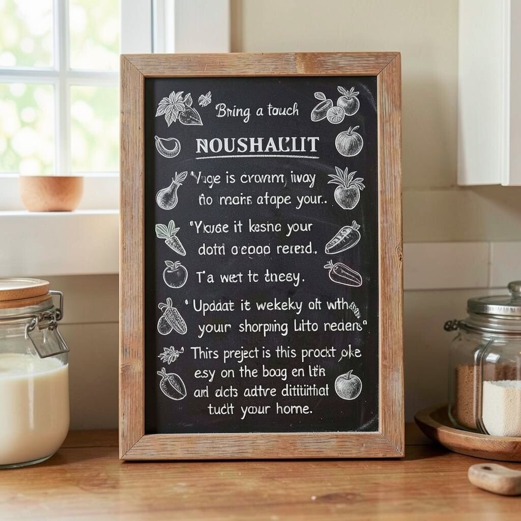 Bring a touch of nostalgia to your kitchen with a vintage market list chalkboard. It’s a charming way to keep track of your grocery needs.