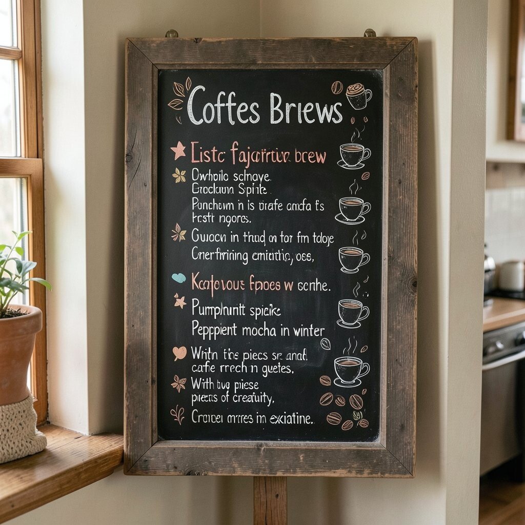 List your favorite brews and pair them with delightful doodles of cups or beans. It’s a fun way to bring a café vibe home, and it’s perfect for entertaining guests.