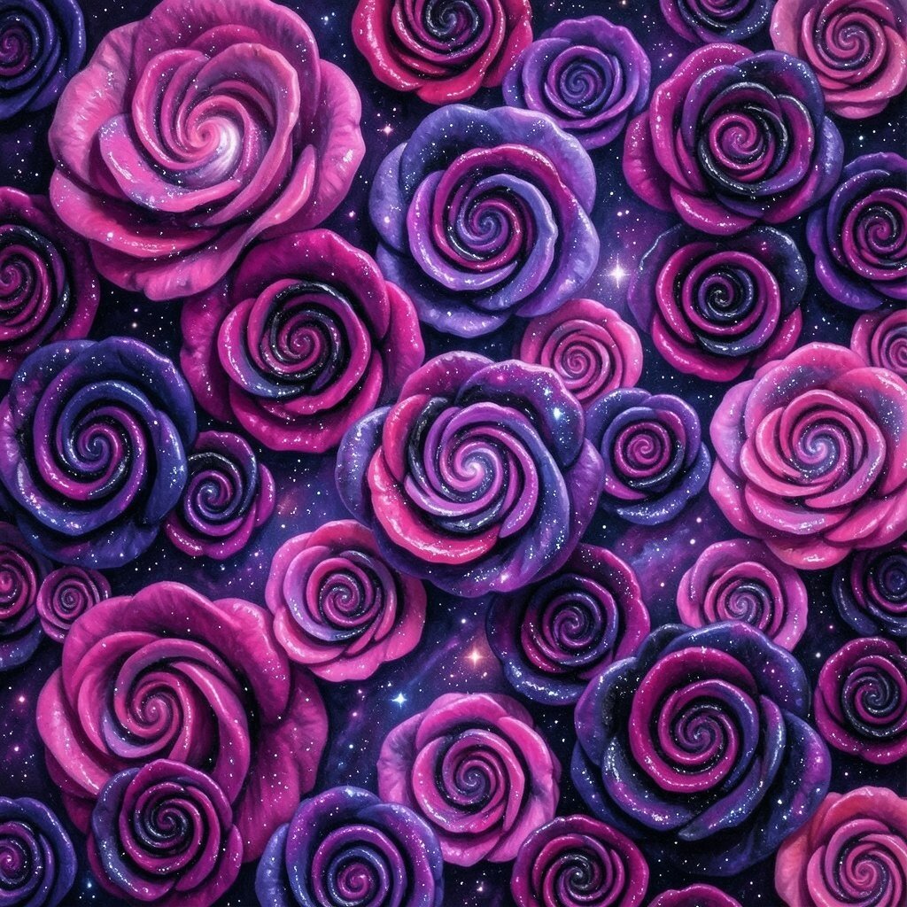 Pinks, purples, and blacks swirl together like the cosmos. This pattern is otherworldly and enchanting.