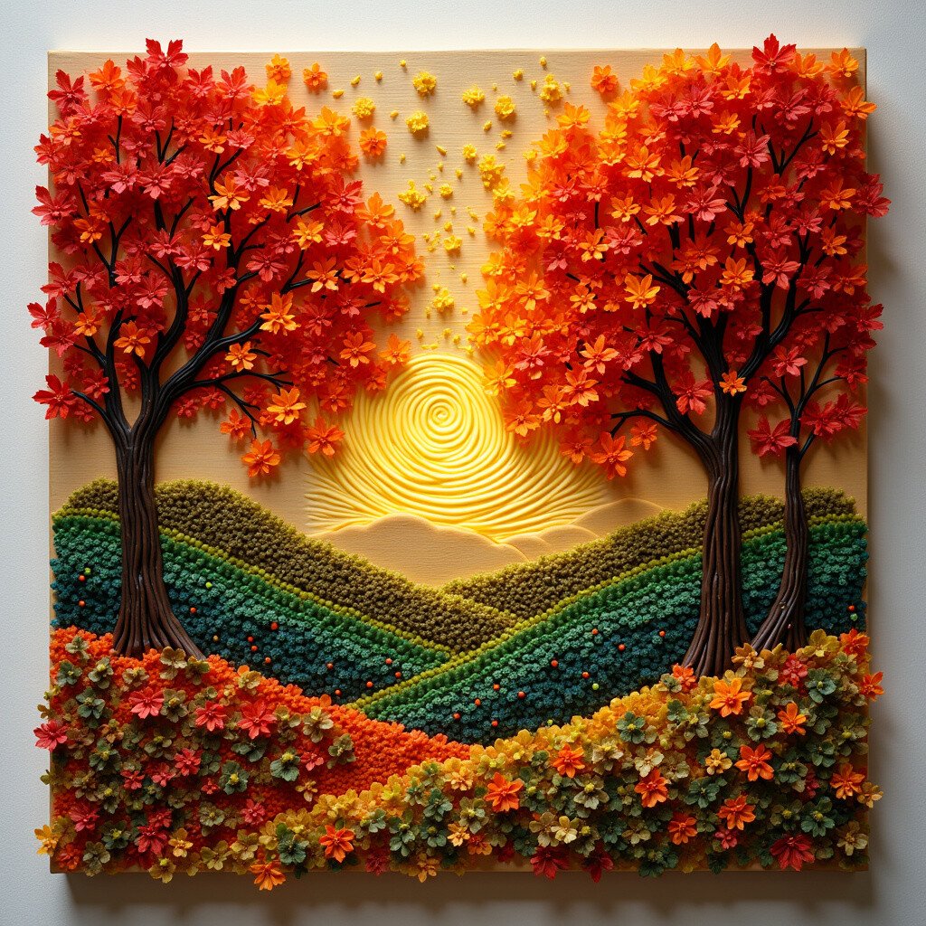 The vibrant coils create a dynamic landscape that changes with the light, imitating the magic of falling leaves. It’s both cheerful and elegant.