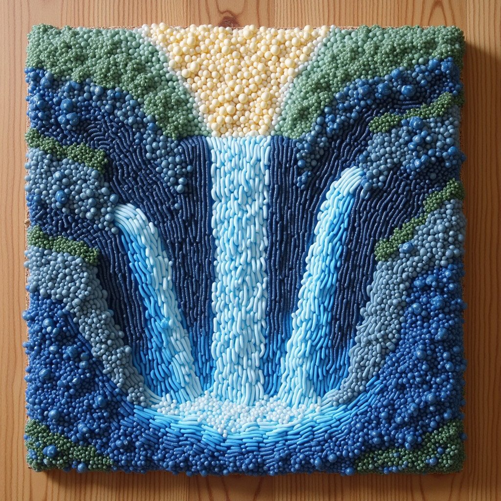 Feel the power of a waterfall with cascading coils of blue and white. This piece is perfect for a bathroom or a calming space.