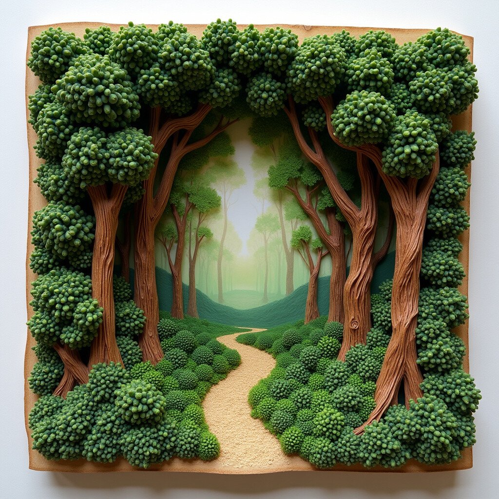 This piece captures the lush beauty of a forest glade, with coils of green and brown creating a dense canopy. It’s ideal for a cozy reading nook, bringing the freshness of the outdoors inside your home.