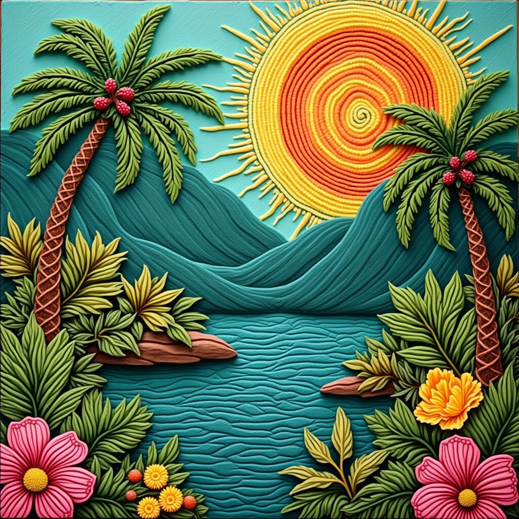 Bring the tropics to your home with vibrant coils of green, yellow, and pink. This lively piece is perfect for a sunroom or patio.