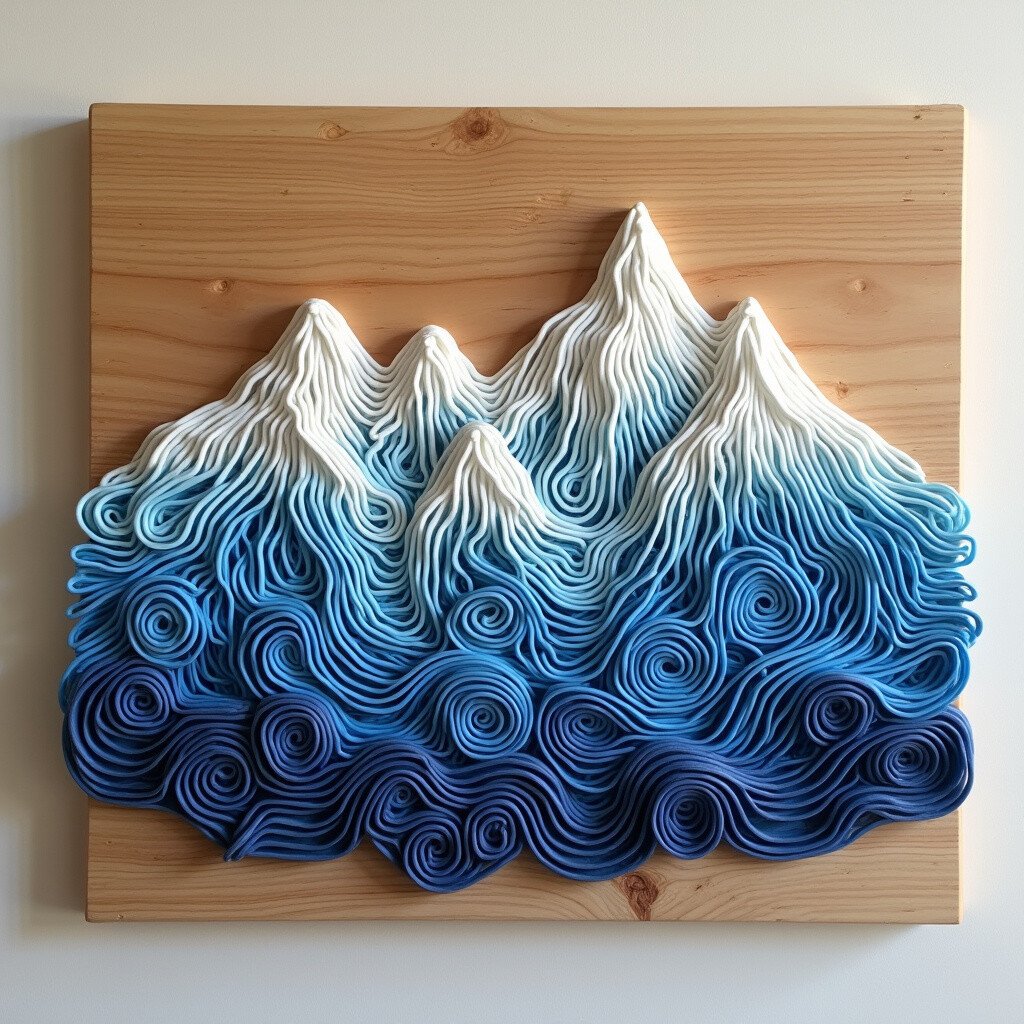 Envision a landscape of majestic mountains, their peaks gently spiraling upward against the wood’s grain. Coiling different shades of blue and white, this piece captures the tranquil beauty of snow-capped mountains. It’s perfect for a living room that needs a touch of calm and serenity.