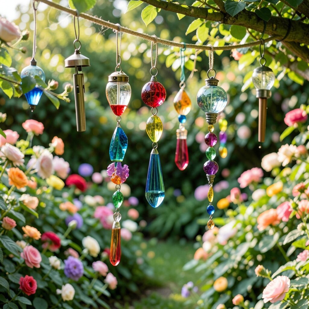 Hang them in a spot where they can catch the wind. They’re available in many styles, from metal to glass. Look for ones with unique shapes or colors that match your garden theme.