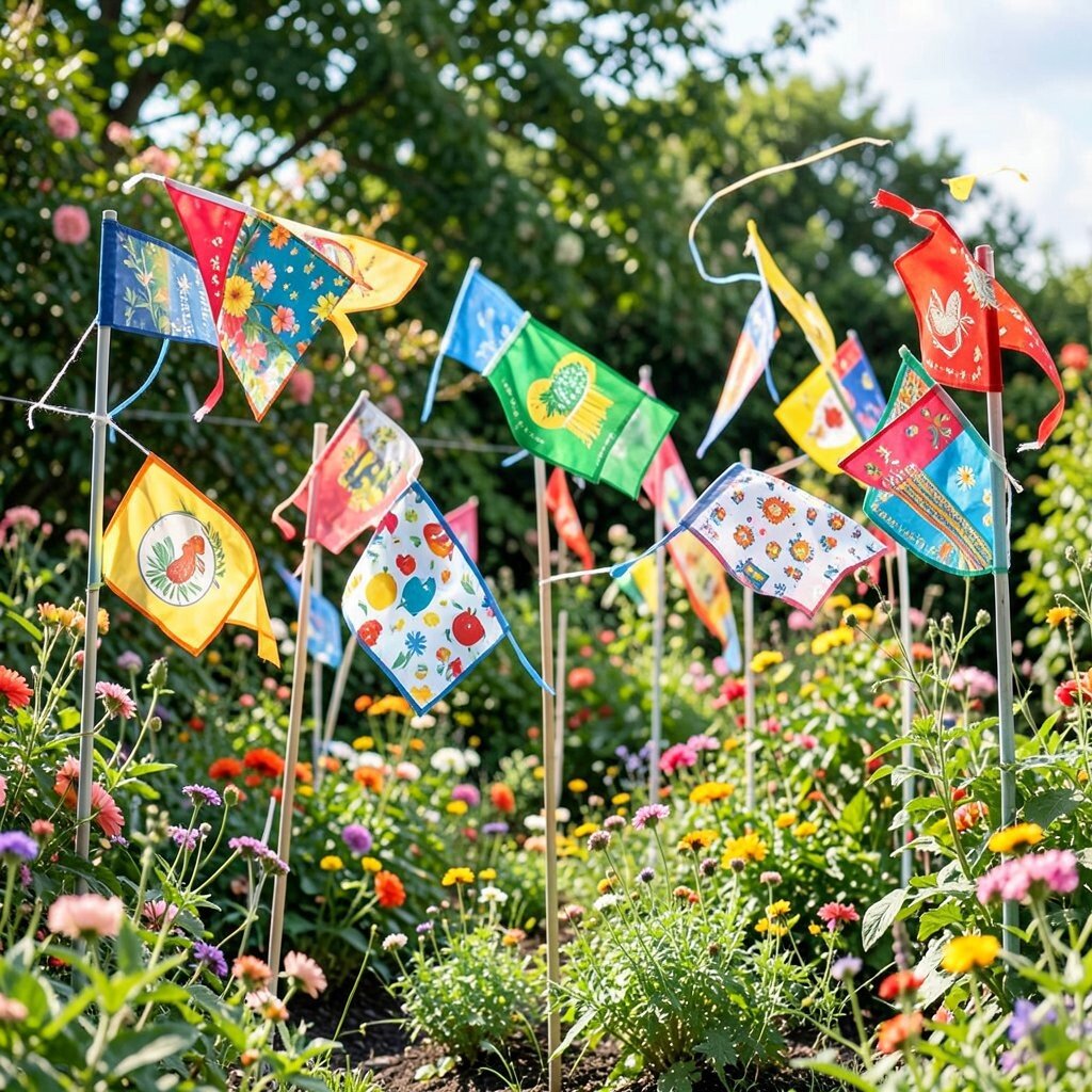 Garden flags fluttering in the wind add movement and color. Choose flags with seasonal designs or cheerful patterns. They’re an easy way to change your garden’s look with the seasons.